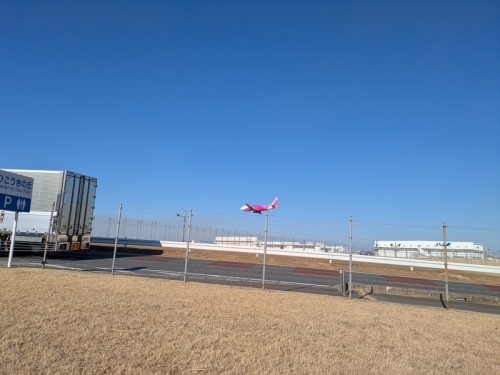 飛行機を撮影しようとしたら、タイミングドンピシャでトラックが通ったり